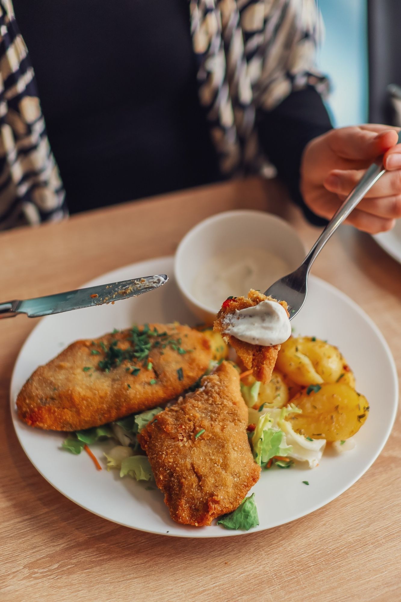 Łosoś na maśle czosnkowym z dipem koperkowym